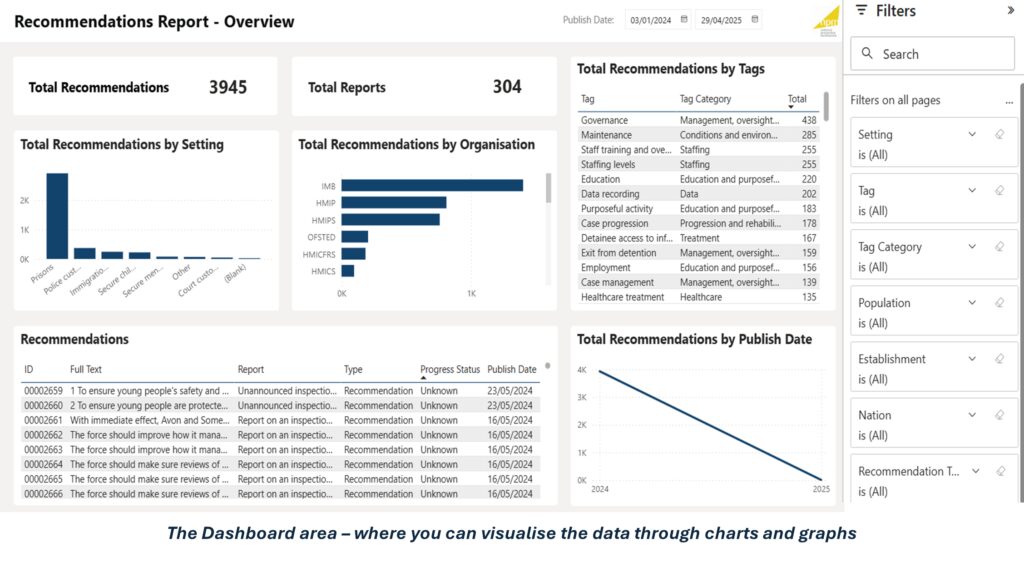 By bringing together findings from all UK NPM bodies, the Reporting Dashboard also fosters greater collaboration and learning, enabling organisations to review each other’s observations and recommendations. This collective insight supports the development of clearer, more actionable, and impactful recommendations in the future.